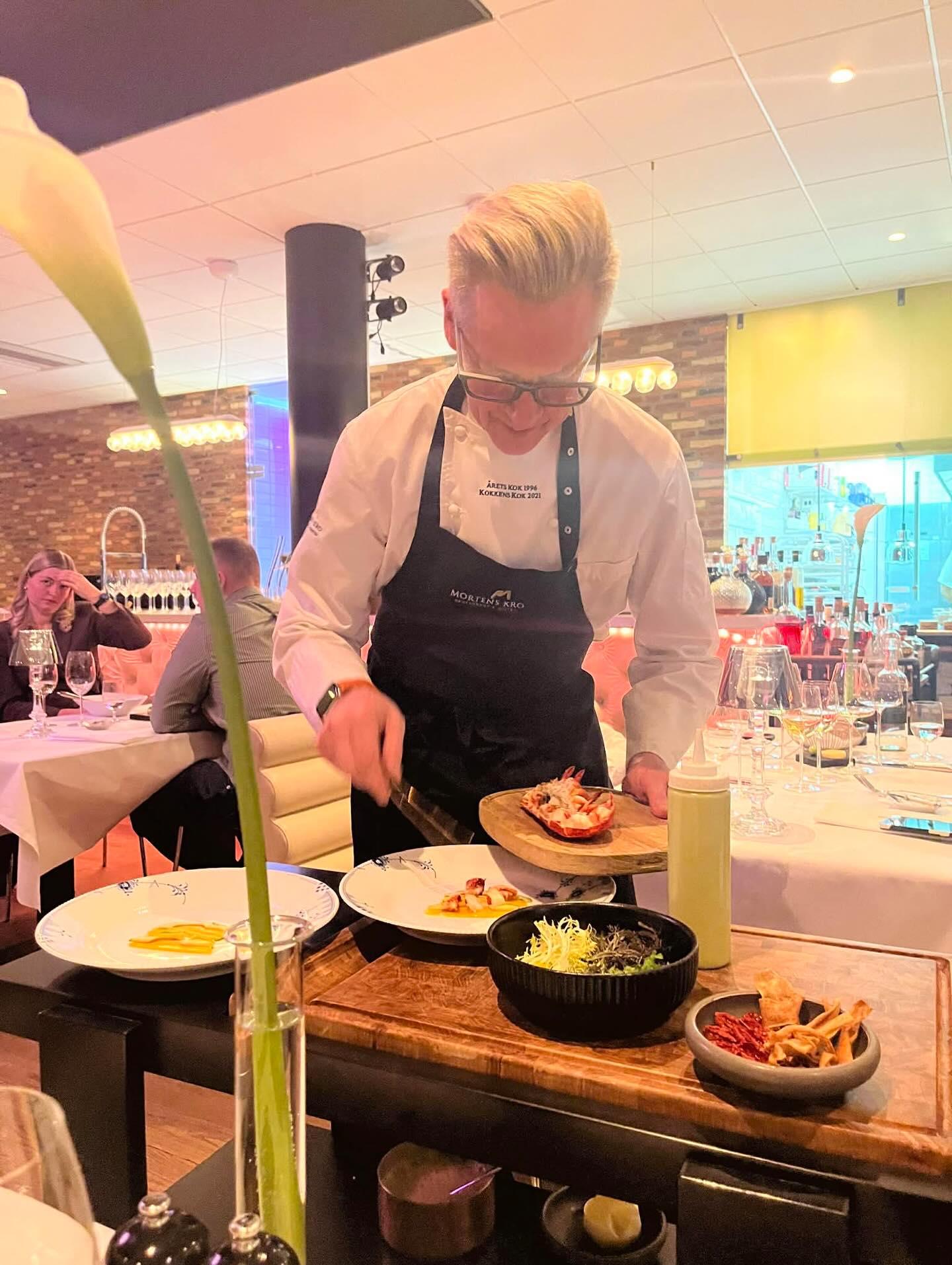 5 retters sommer menu med Vesterhavsfisk, læsøjomfruhummer, Wague okse, Sommerbuk fra Klosterheden og konditorens sommer dessert med jordbær og rabarber i 2 serveringer.