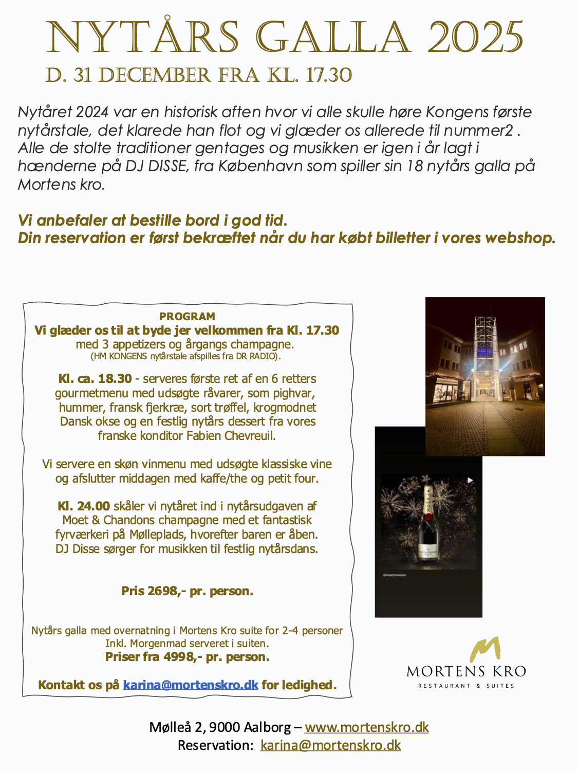ÅRETS NYTÅRS GALLA - Champgane, udsøgt menu og vine- DJ -fyrværkeri og kransekage