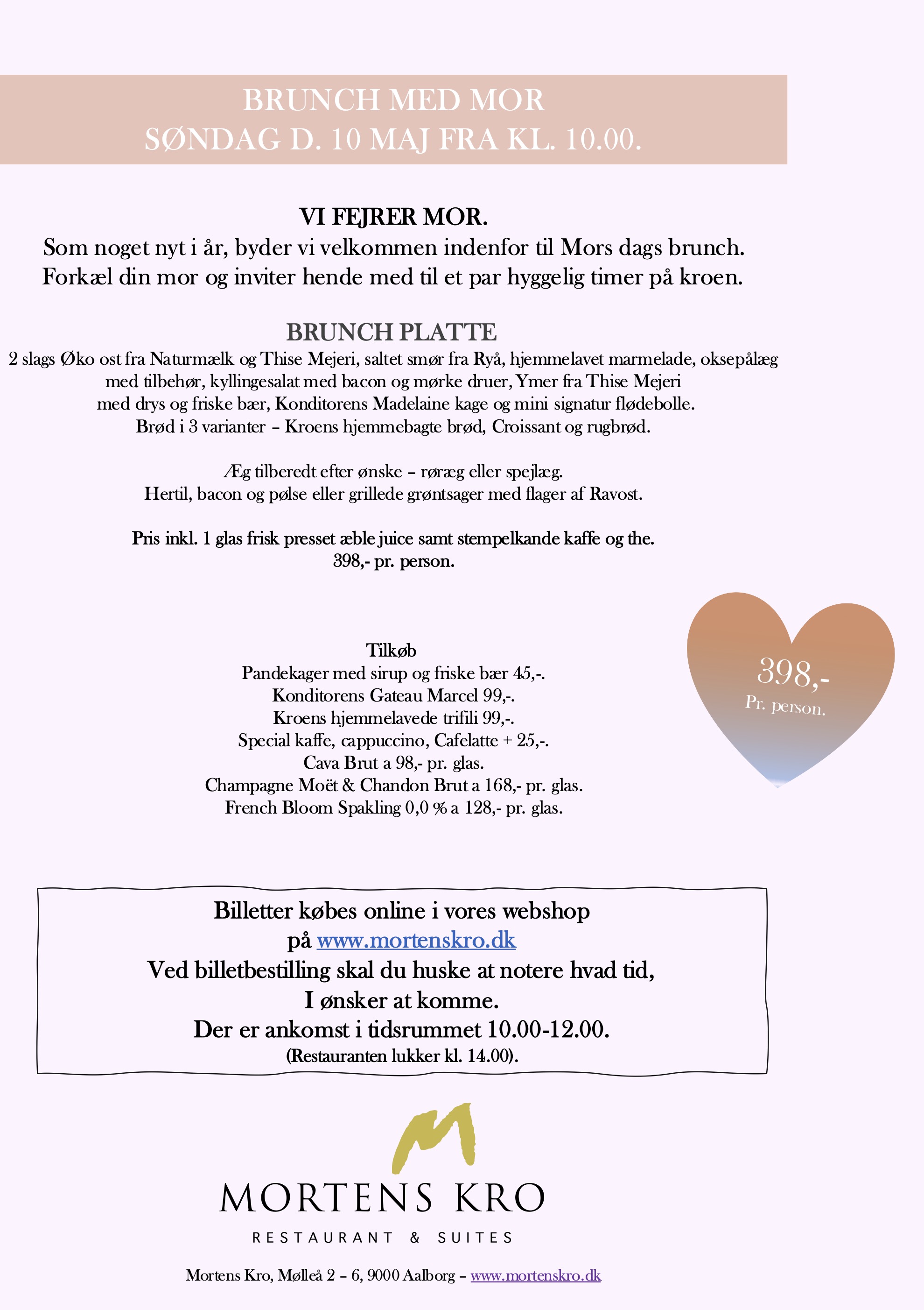 MORS DAG BRUNCH Ankomst fra 10-12.00 kun mod køb afbillet som gælder som bordbestilling